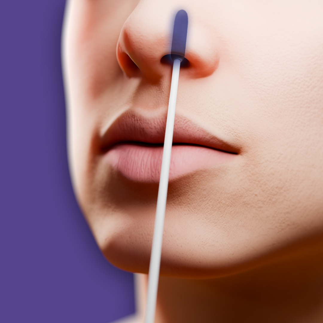 With clean hands, insert swab 1/2 to 3/4 of an inch into nostril. Rotate the swab at least 5 times against the nostril wall. Repeat in other nostril.